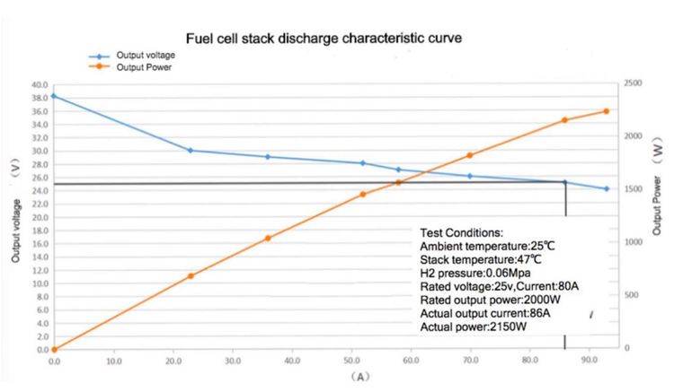 ③ When the hydrogen is introduced into the fuel cell, the fuel cell starts to operate and the fan starts to rotate. Please do not load any load when the fuel cell starts. - Upon the starting of the fuel cell, the load may be gradually increased within the rated power range as required, but cannot be immediately added to the rated power. The fuel cell has an over-current condition. The control alarm shows that the stack voltage may run the normally at DC voltage range.